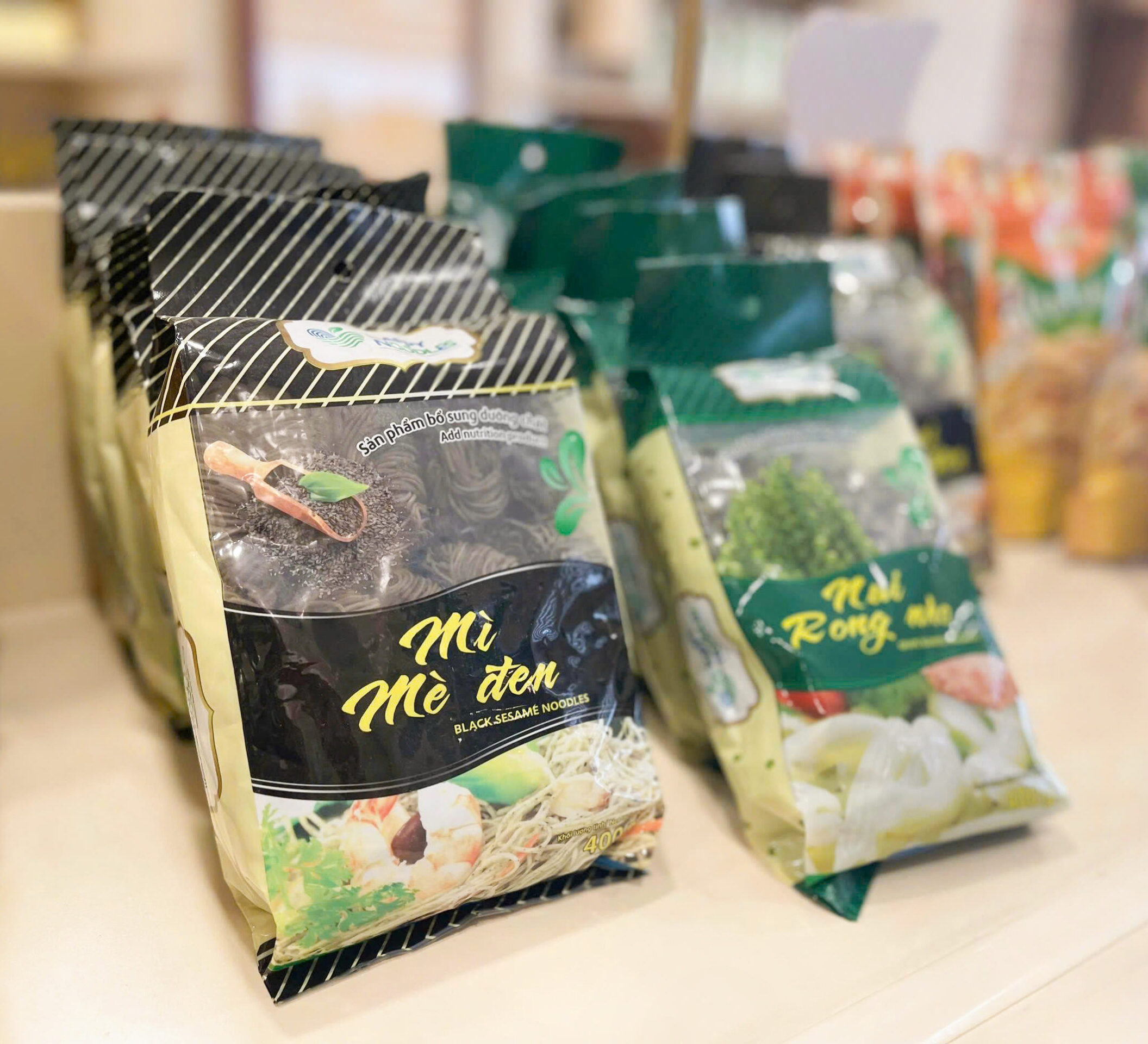 Sản phẩm mì mè đen HAPPY NOODLES được sản xuất tại làng bột Sa Đéc (tỉnh Đồng Tháp). Mì có màu sắc và hương vị tự nhiên, đảm bảo độ dai sau khi nấu. Mì mè đen HAPPY NOODLES rất tiện lợi và dễ chế biến: bạn chỉ cần cho mì vào nước đang sôi và nấu vài phút, bạn đã có thể chế biến mì thành nhiều món ăn như mì trộn, mì xào,…. Với nguồn dưỡng chất từ mè đen, sản phẩm là lựa chọn phù hợp để bạn tạo nên những bữa ăn chất lượng cho cả gia đình.