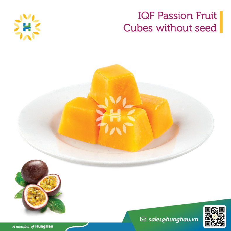 Nước ép chanh dây đông lạnh của HungHau Foods được cấp đông bằng công nghệ IQF đạt chuẩn, giúp giữ nguyên giá trị dinh dưỡng, hương vị và màu sắc của chanh dây tươi. Sản phẩm được chế biến từ những quả chanh dây sạch, có nguồn gốc rõ ràng từ nhà nông Việt Nam. Nhờ vào công nghệ IQF, sản phẩm có thể được bảo quản đến 24 tháng trong nhiệt độ −18 °C.